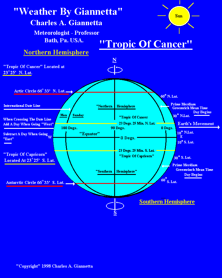 Tropic of Cancer: Located at 23'27" North Latitude.