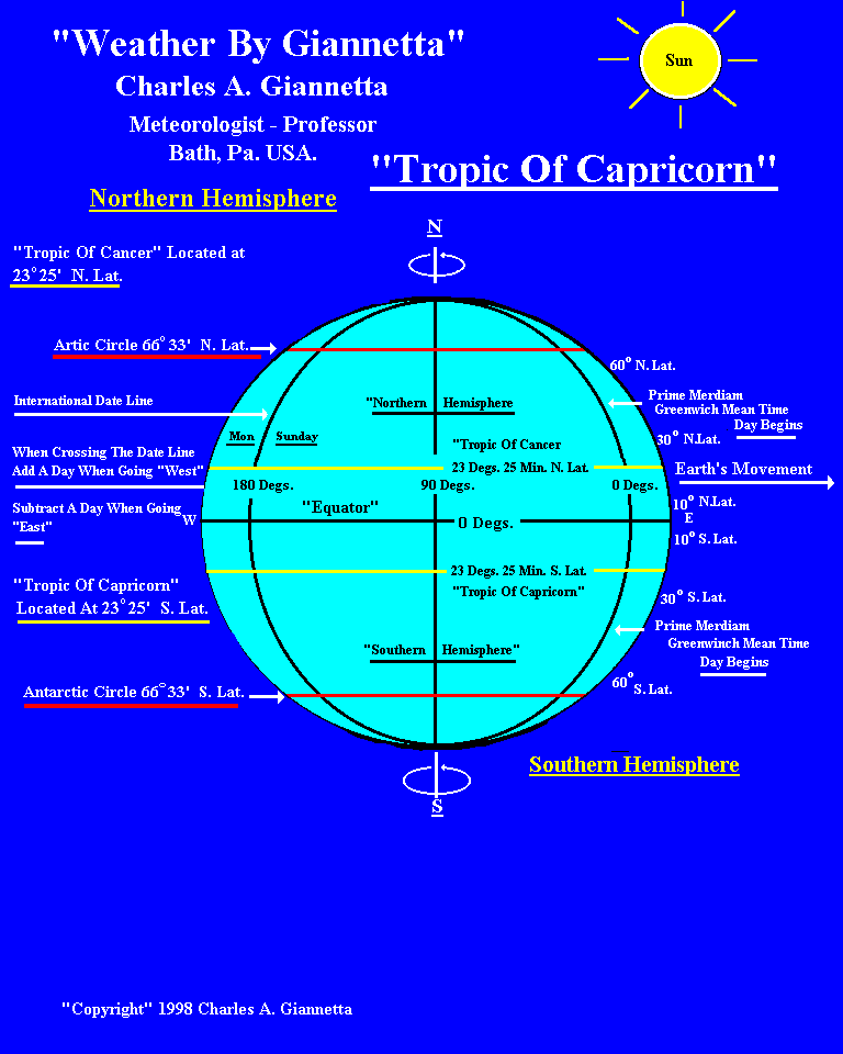 Tropic of Capricorn: Located at 23'27" South Latitude.