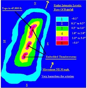 3. If your aircraft has radar they can be detected by the| 2. The thunderstorms are interactive and cover a very