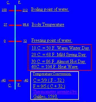 Temperature Scales: Fahrenheit Scalewhere 32 Degs. is freezing & 212 degs is boiling.