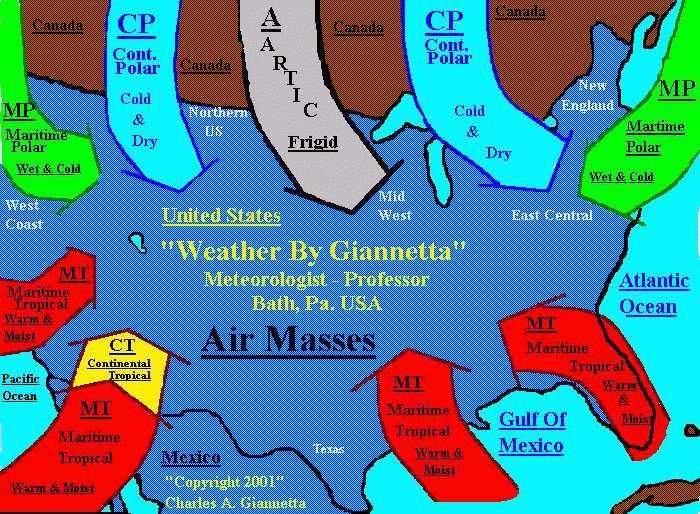 properties of Continental Polar air. As this air mass moves south